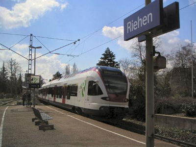 to Riehen SBB/DB direct trains from Basel SBB via German Station to Riehen. From there we can pick
